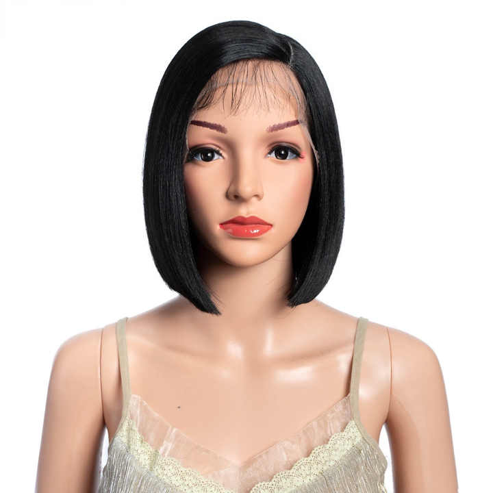 Peluca de Cabello Humano Huilian de 10 Pulgadas, Corte Bob, Larga hasta los Hombros, Lisa, en Rubio/Marrón para Mujer