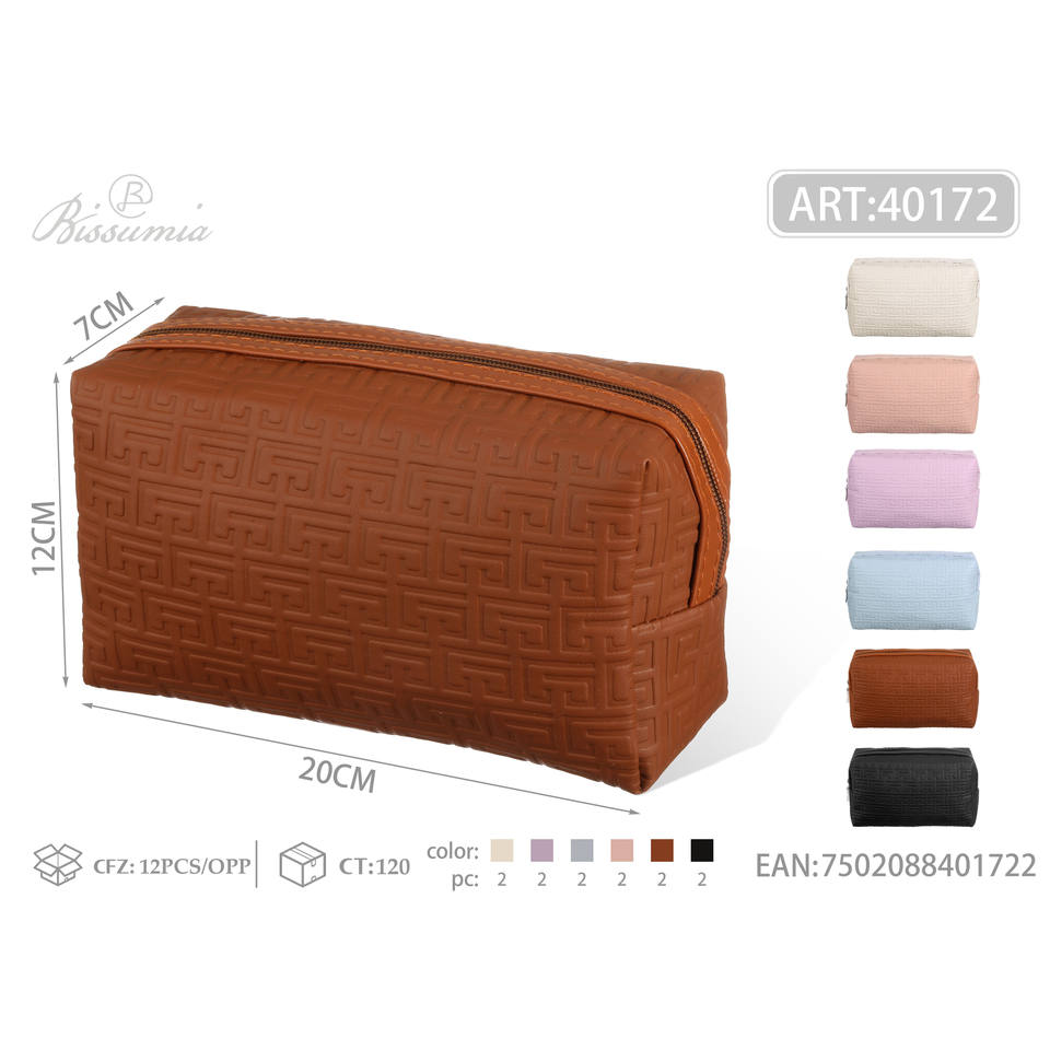 Bolsa de almacenamiento de cosméticos de PU octogonal con patrón Huizi, ecológica, resistente al agua y portátil con cremallera suave 20*12*7cm