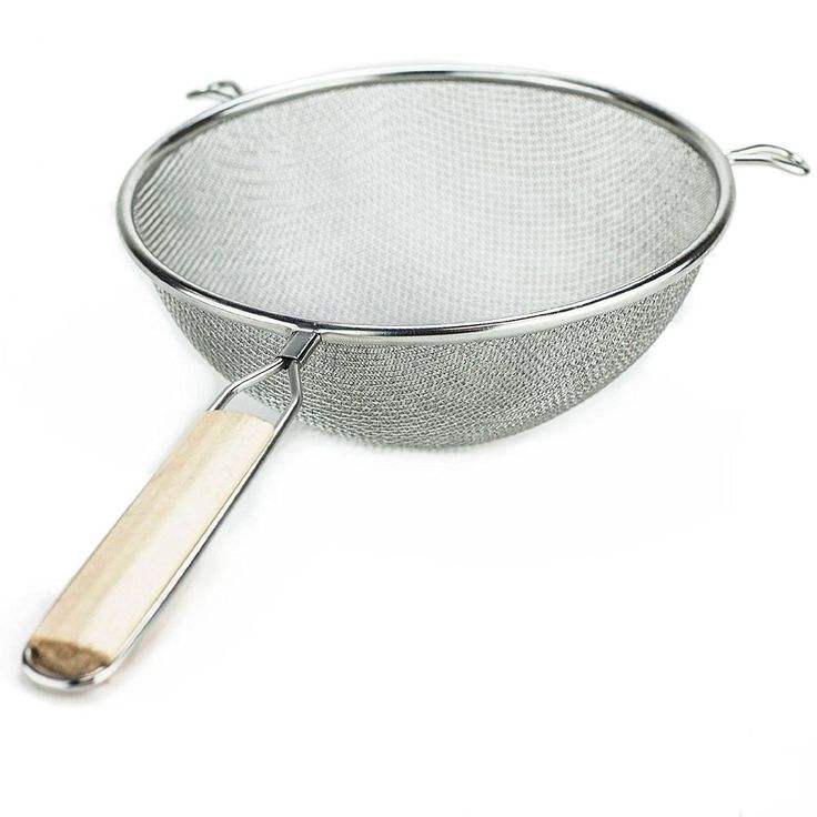 Colador de Alimentos de Acero Inoxidable de Doble Malla Huji de 8 Pulgadas, Colador Fino con Mango de Madera, Resistente al Calor, Apto para Lavavajillas