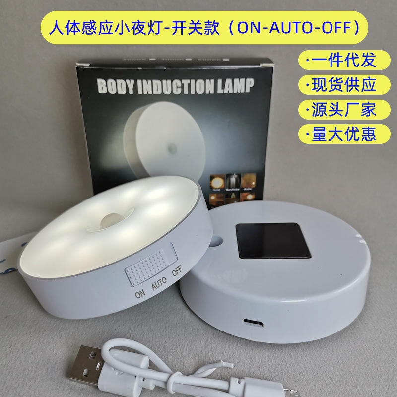 Luz nocturna con sensor de cuerpo humano, luz LED redonda que funciona con pilas, luz blanca cálida para dormitorio, armario, uso junto a la cama