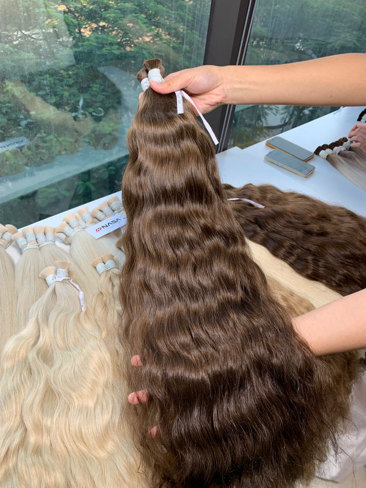 Extensiones de Cabello Humano a Granel, Doble Trama, Cabello Virgen Vietnamita, 100g, Ondulado Natural, Todos los Colores, 60 cm de Largo