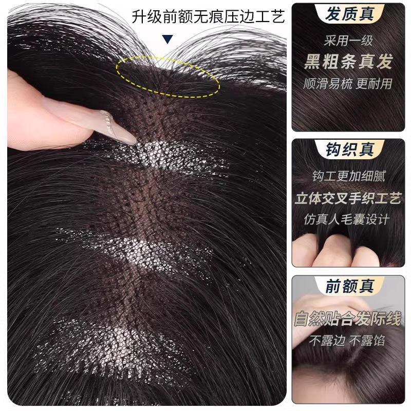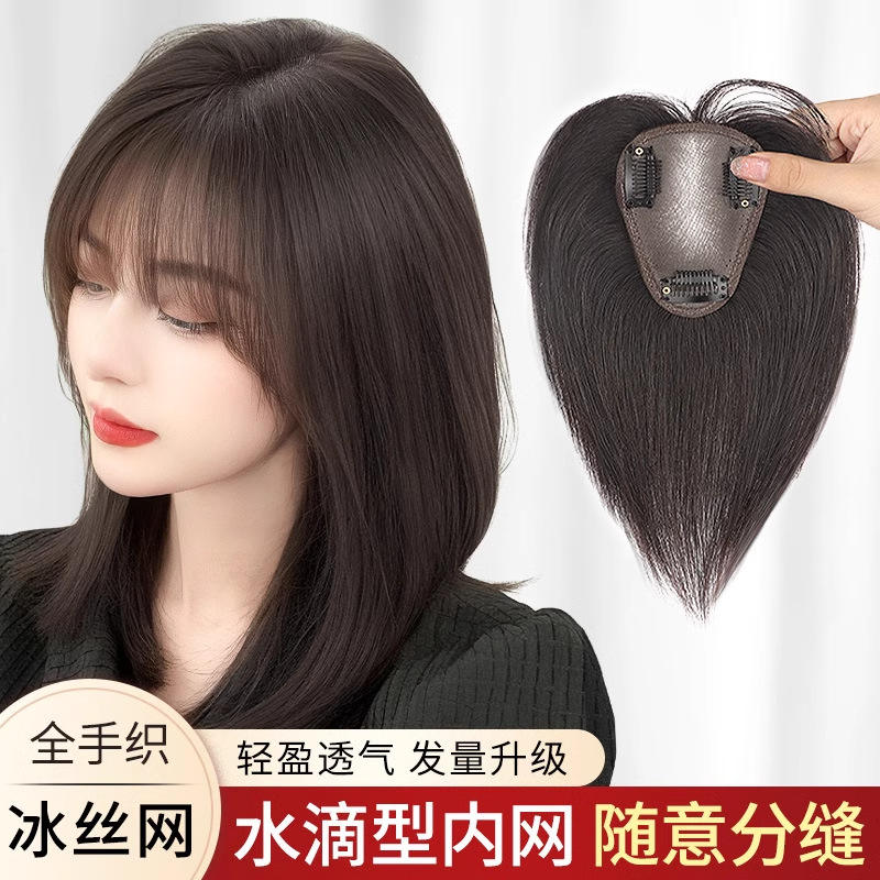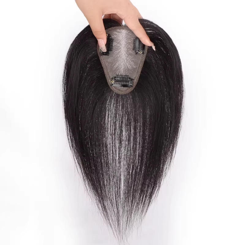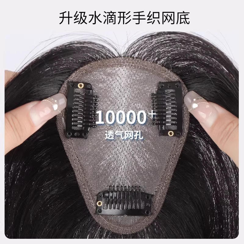 Extensiones de Cabello Humano con Volumen Completo, Malla en Forma de Lágrima, Partidura Central, Sin Costuras, Cobertura Gris para Mujeres