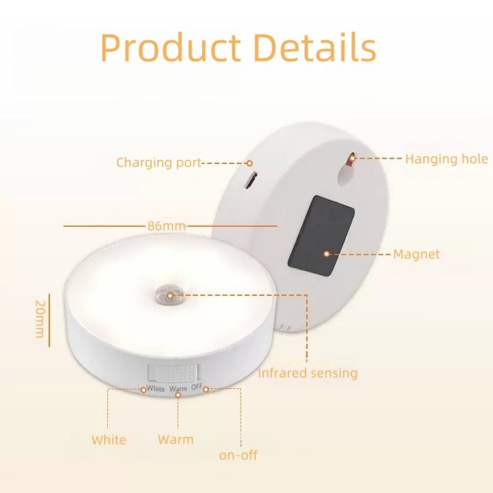 Luz con Sensor de Movimiento Humano, Recargable por USB, 800mAh, Tamaño Mediano, LED Regulable, para Escuela, Dormitorio, Pared/Gabinete