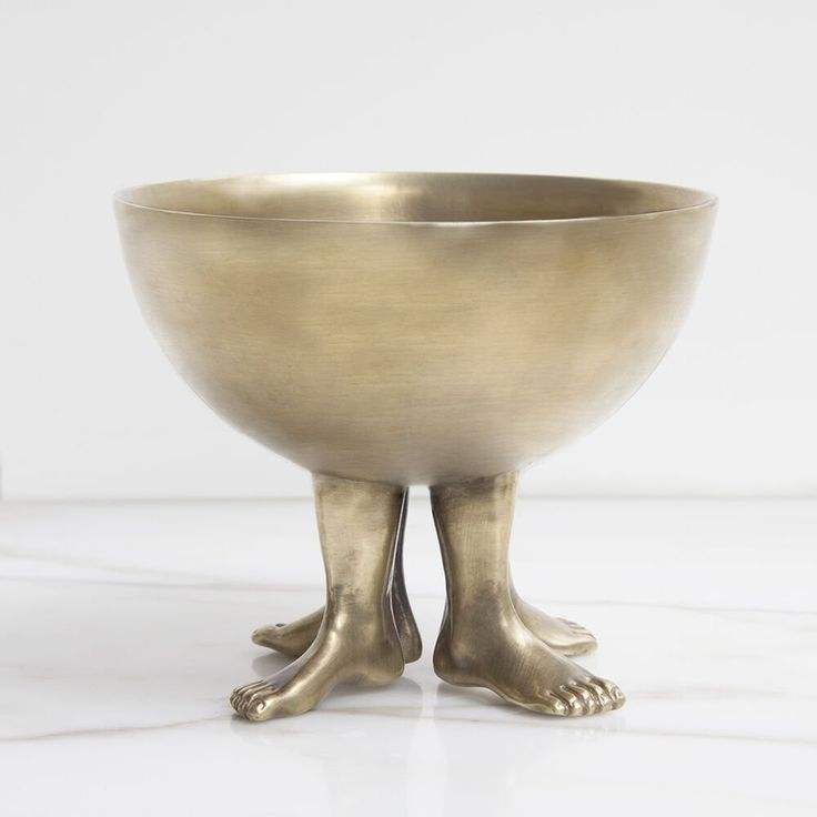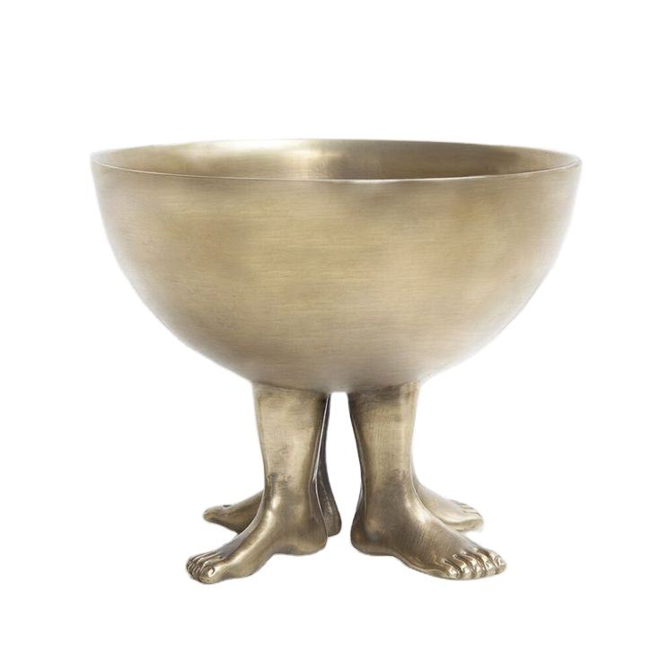 Diseño en forma de pierna de pie humano, cuenco decorativo para servir frutas de lujo, fundición de aluminio dorado antiguo