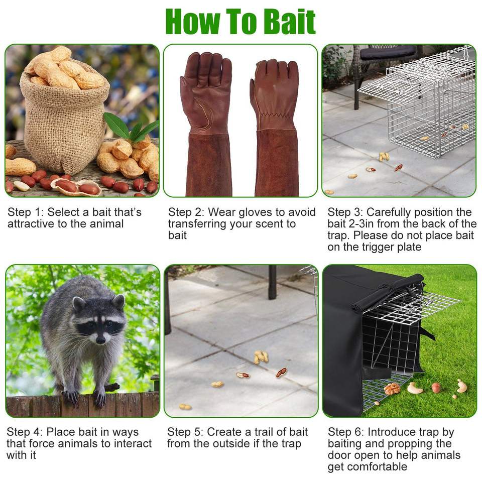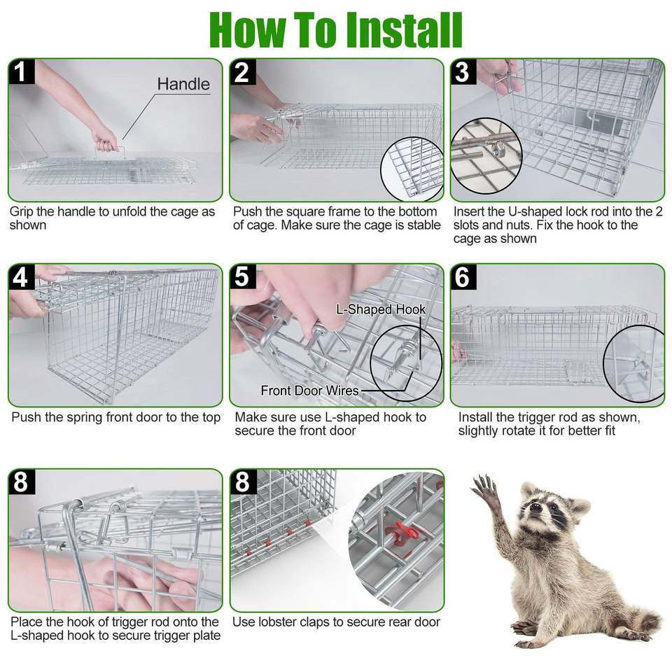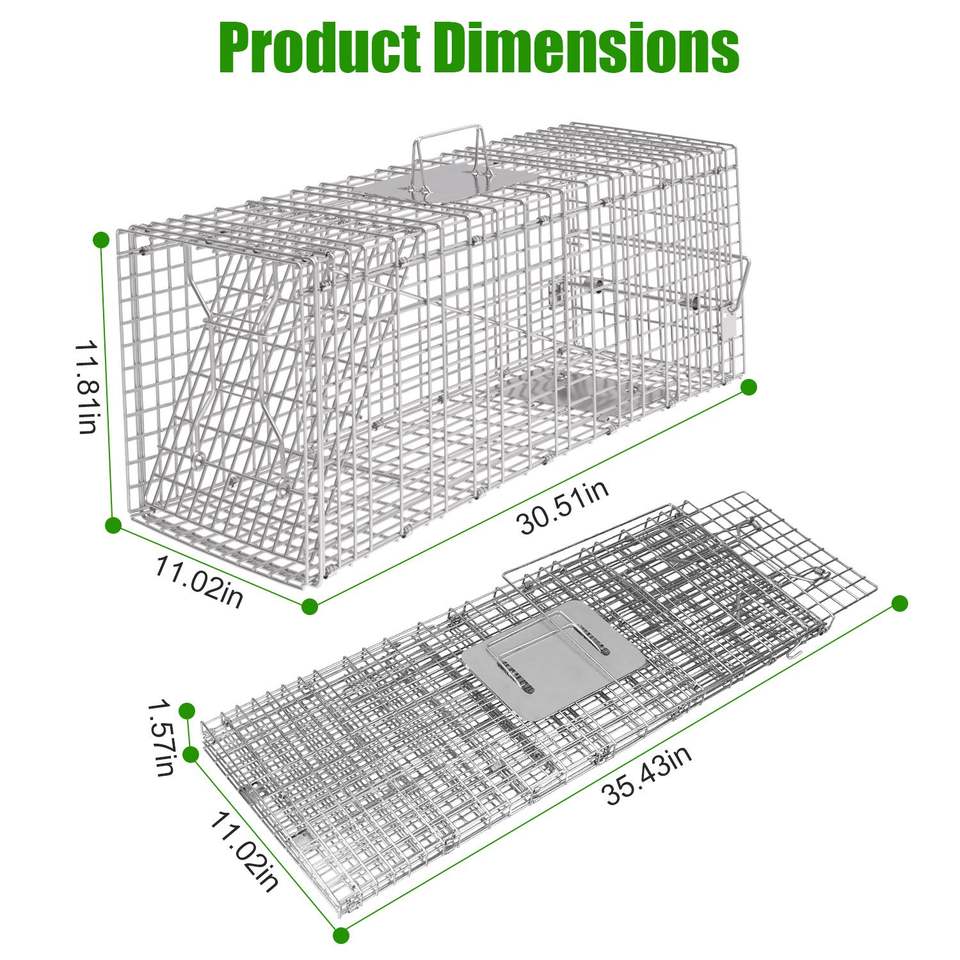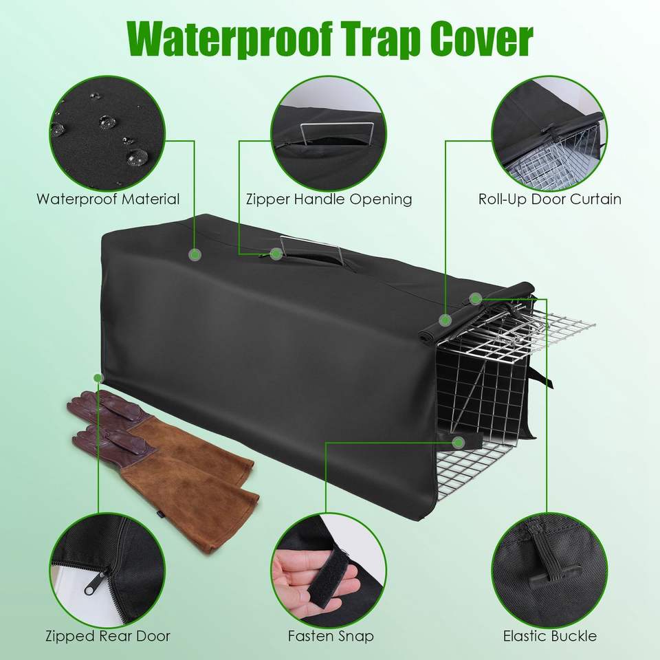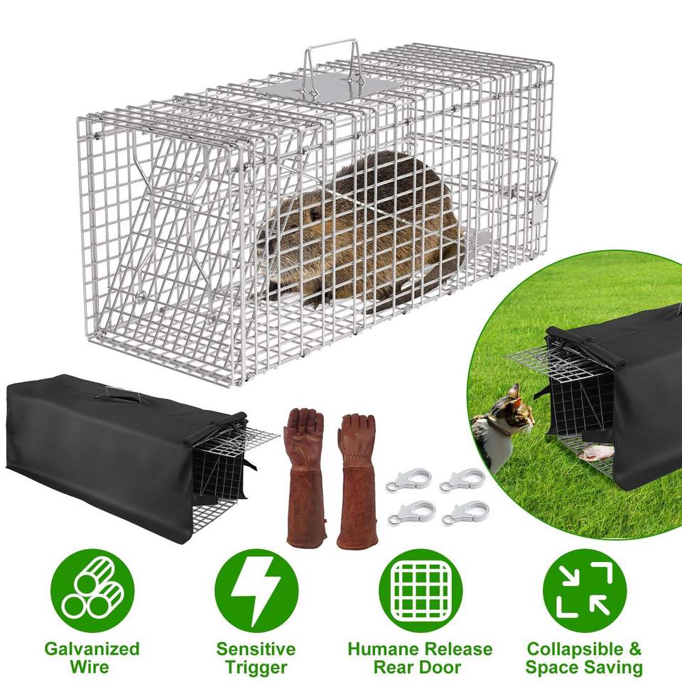 Trampa Humana para Gatos y Mapaches con Cubierta Impermeable, Jaula Plegable de Alambre Galvanizado con Guantes para Captura y Liberación de Animales Vivos, Jaula para Mascotas