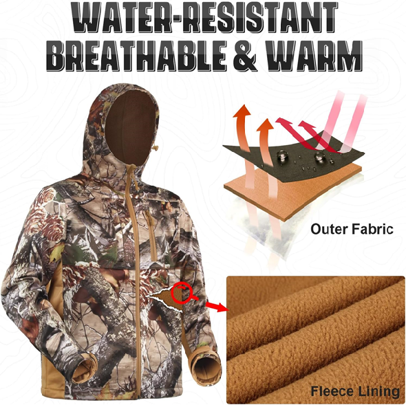 Ropa de Caza para Hombre, Chaqueta de Caza Compatible con Correa de Seguridad, Pantalones con Forro Polar, Silenciosa, Cálida y Resistente al Agua