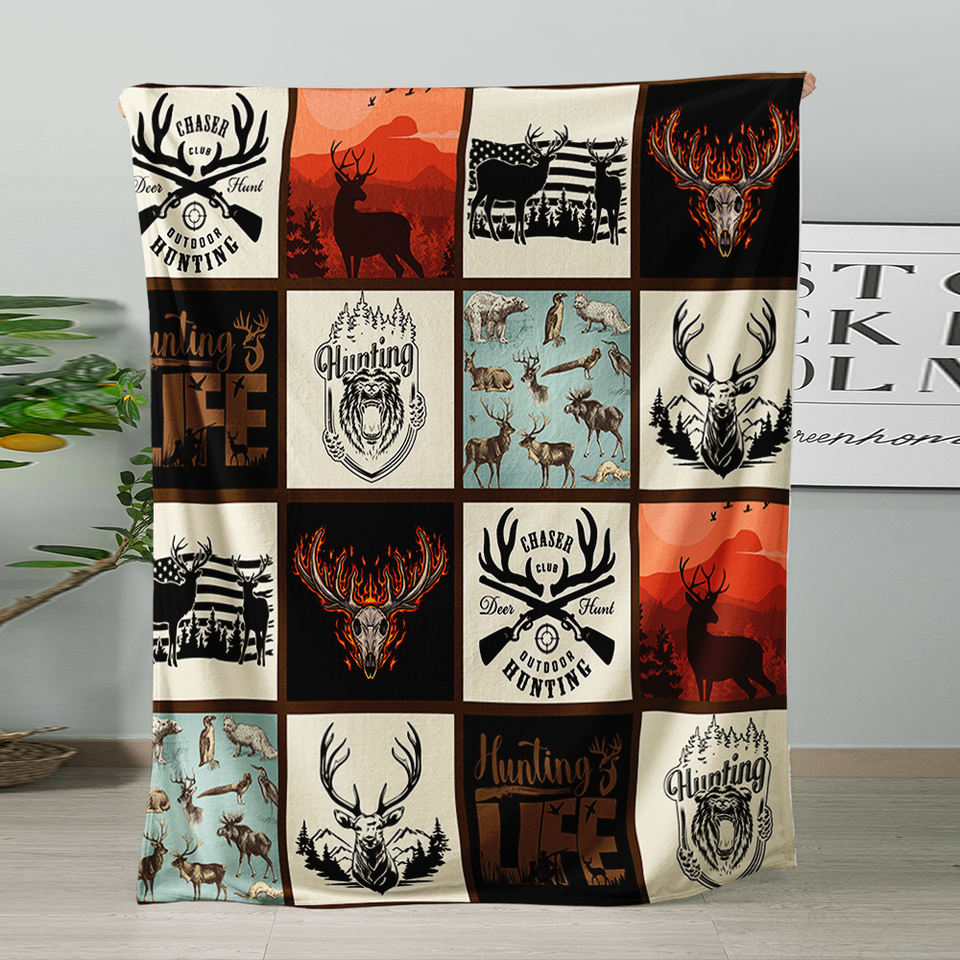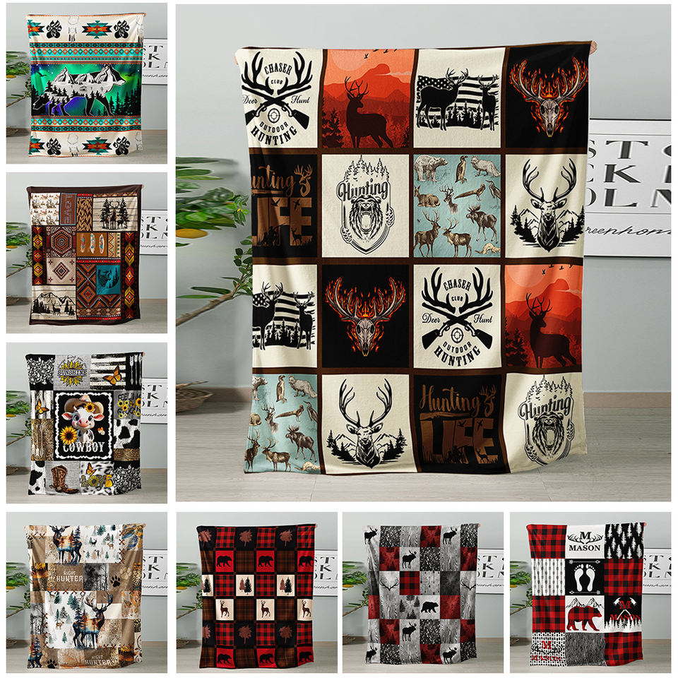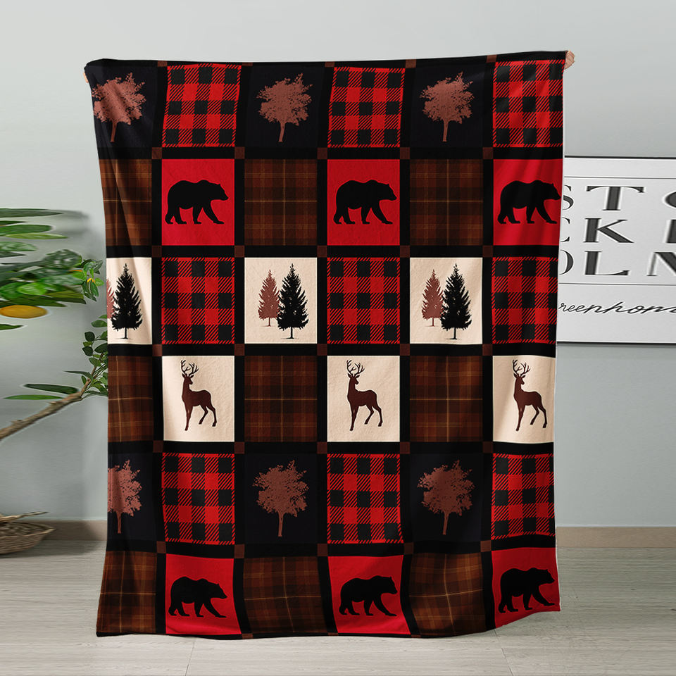 Manta Personalizada de Franela Estampada con Diseño de Oso y Ciervo del Bosque, Ecológica, Suave, para las Cuatro Estaciones