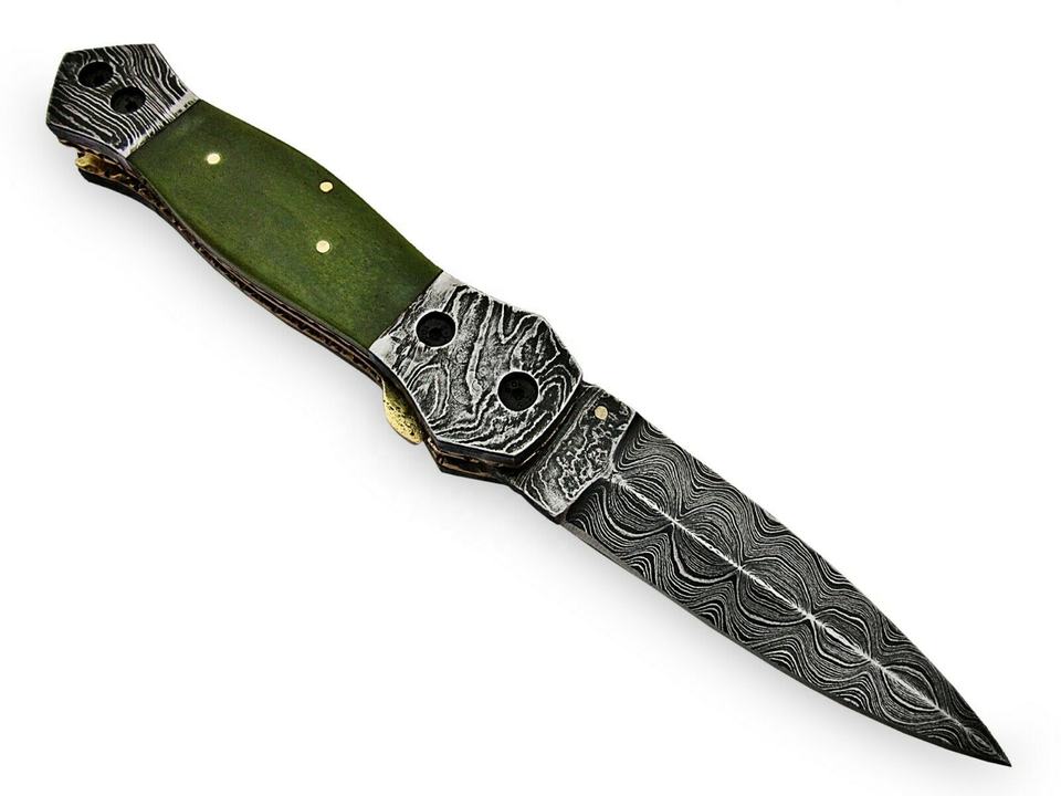 CUCHILLO PLEGABLE HERMOSO CUSTOM HECHO A MANO DE ACERO DE DAMASCO