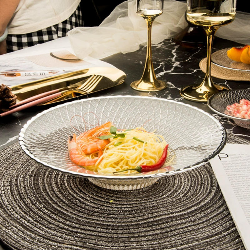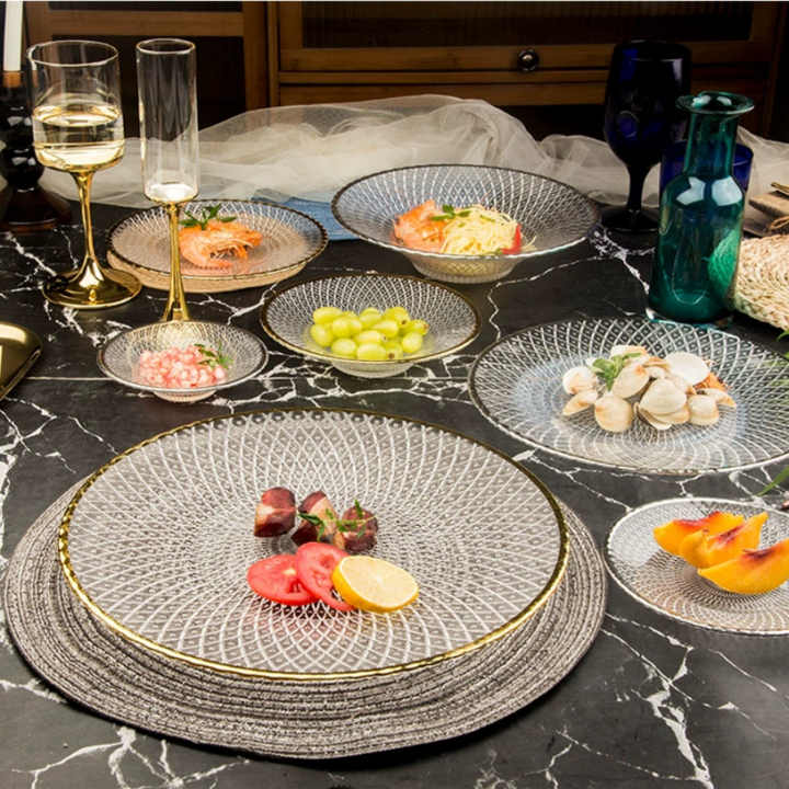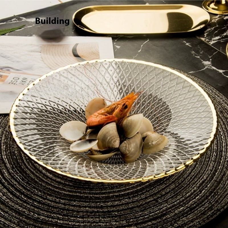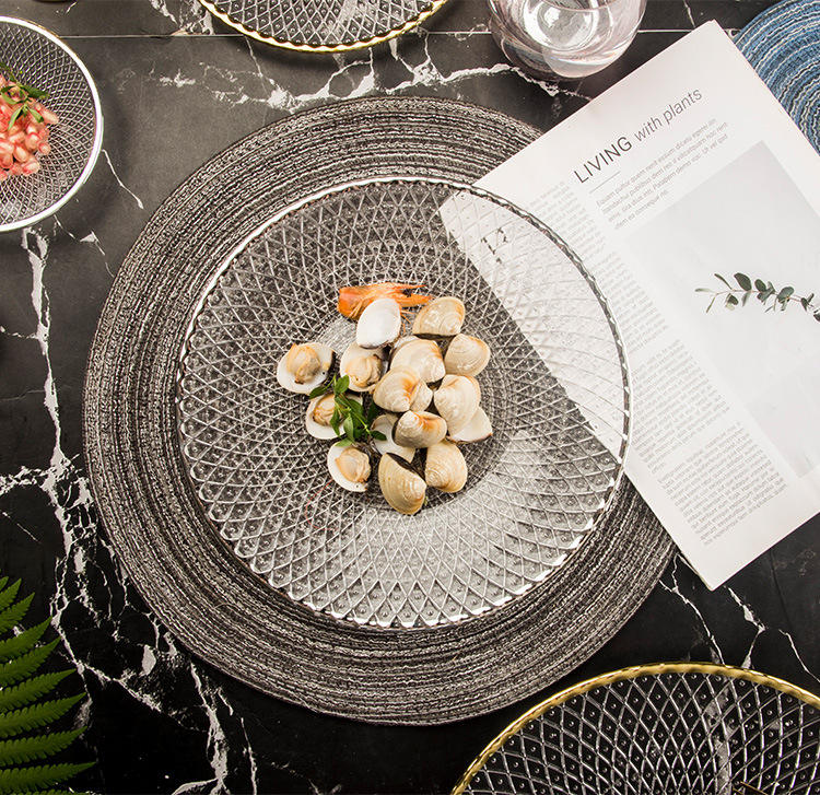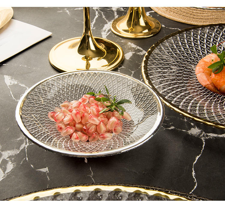 Plato de fruta de cristal con borde dorado de estilo francés Hxglass, Plato decorativo de boda, bandeja con patrón de plantas, platos para servir para Catering