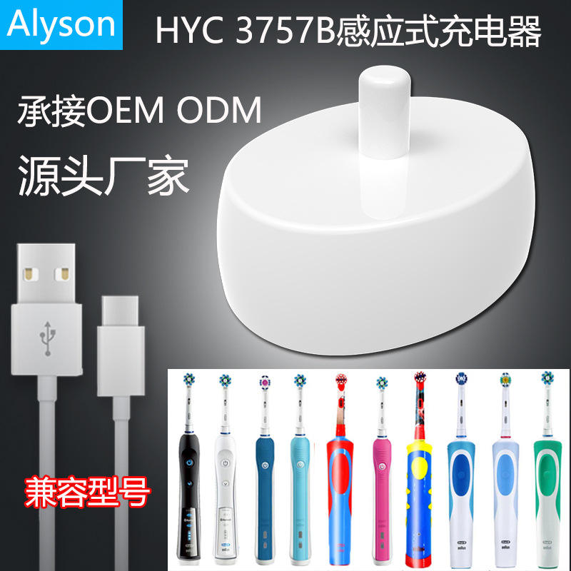 Cargador de Inducción para Cepillo de Dientes Eléctrico HyC3757B, Tipo-C, IPX7, Resistente al Agua, Base de Plástico Recargable para Oral-B 3709D12D16D20