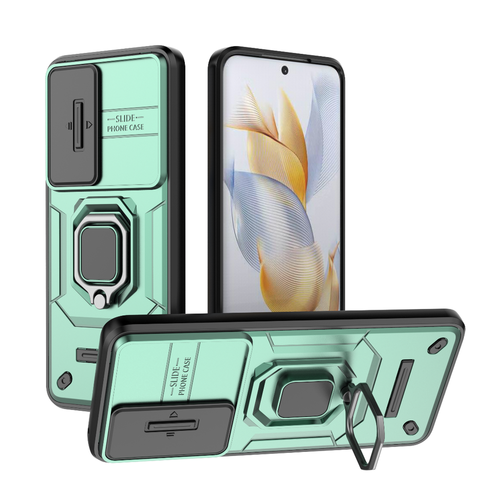 Estuche híbrido Combo TPU PC con soporte para anillo Cámara deslizante Proteger armadura Cubierta resistente a prueba de golpes para Honor 90 Pro Estuche