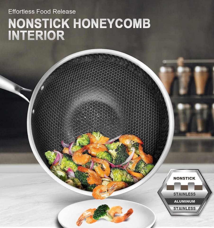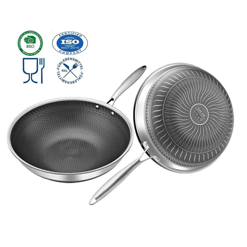 Nombre del Producto:Wok de Acero Inoxidable Triple con Diseño de Panal