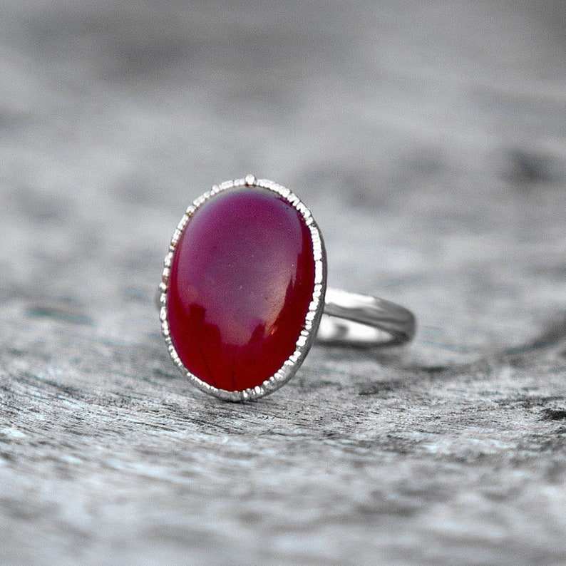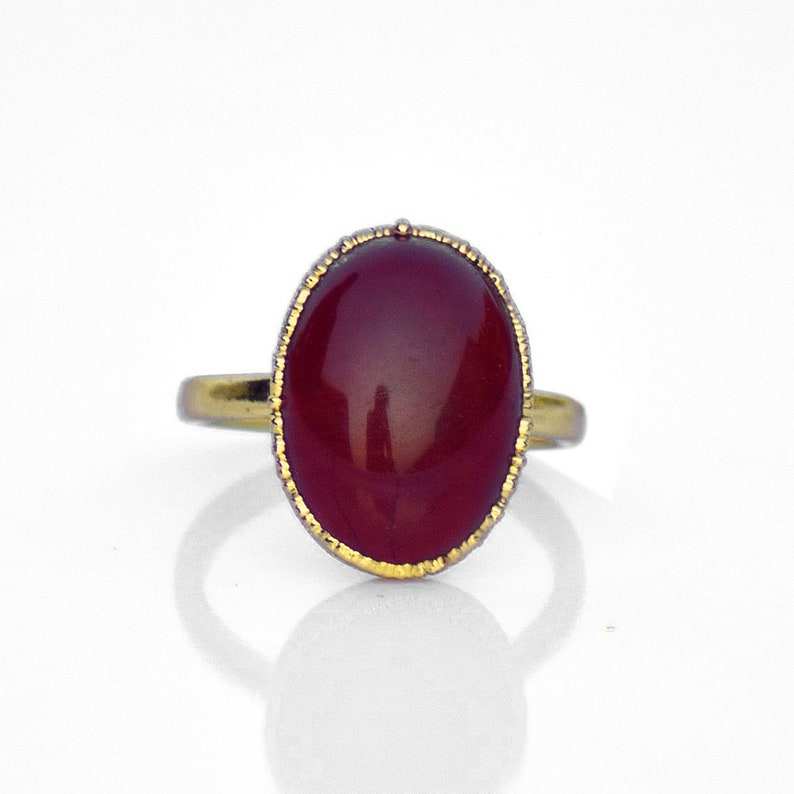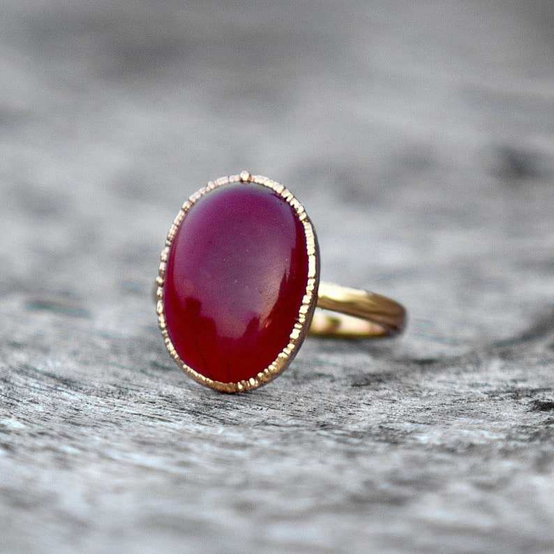 Palabra clave:Anillo de plata 925 con ónix rojo, chapado en oro, ónix rojo