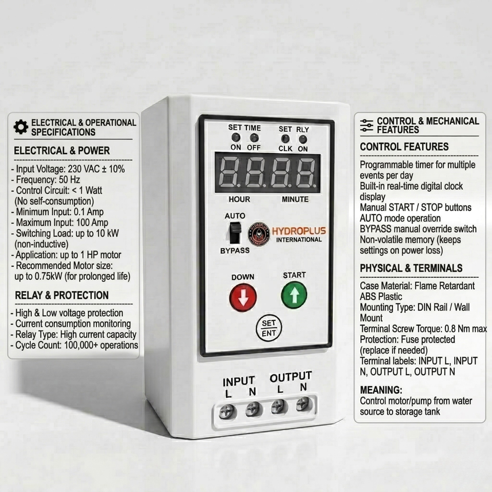 Temporizador Digital para Exteriores Hydroplus, Reloj para Iluminación de Jardín, Bomba de Limpieza Solar, Luz de Calle, Letrero Luminoso, Automatización