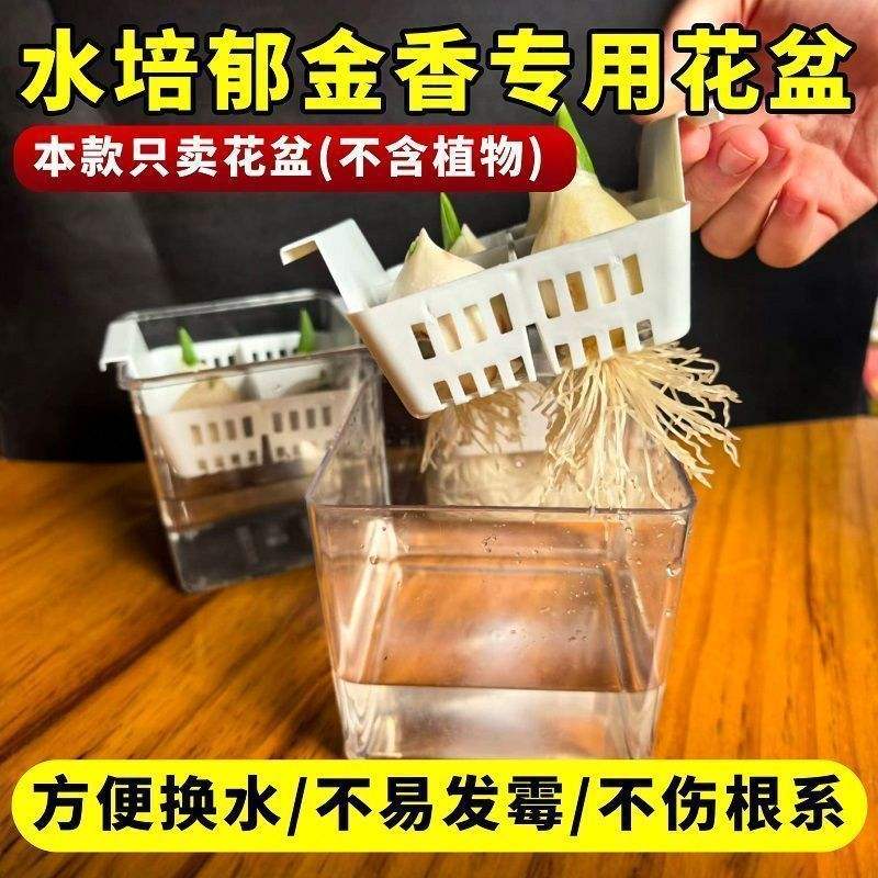 Juego de Cultivo Hidropónico para Tulipanes, Maceta Transparente de Plástico con Cesta para Escritorio, Diseño Cuadrado, Estilo Minimalista A-130