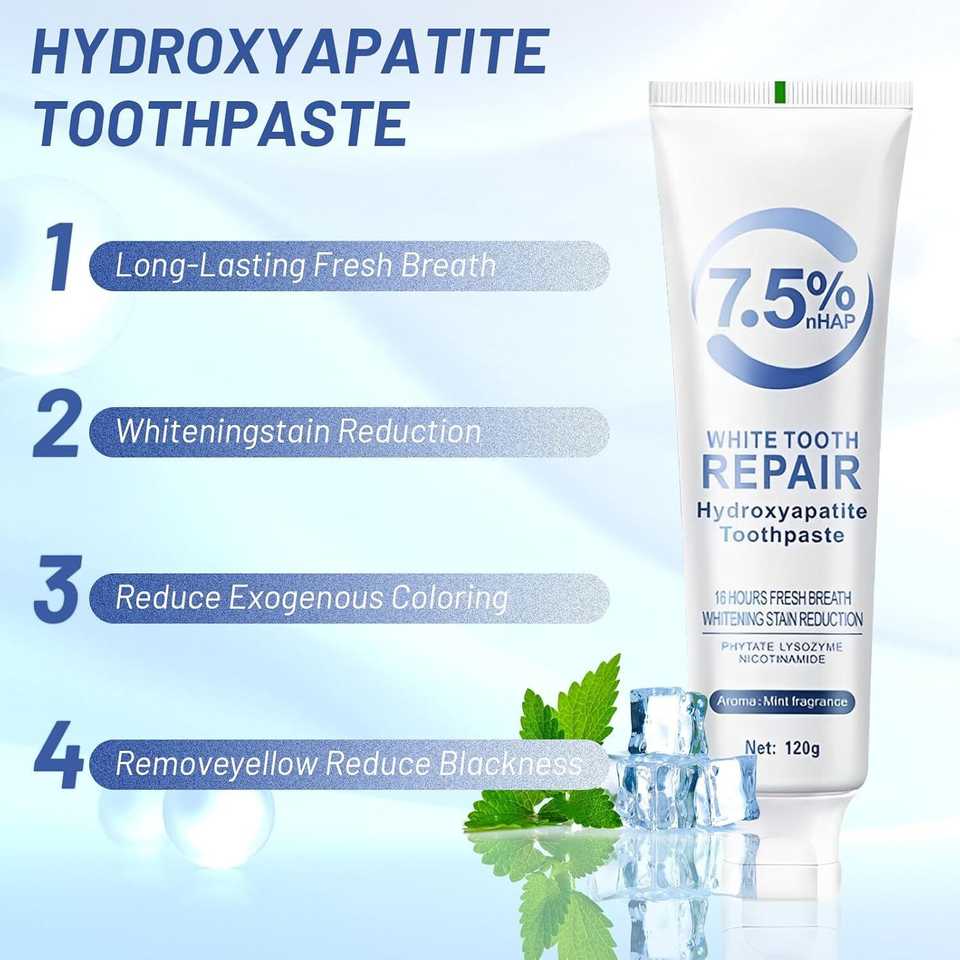 Pasta Dental con Hidroxiapatita para Reparación del Esmalte, 7.5% nHAP, Blanqueadora, Protección para Dientes Sensibles, Aliento Fresco, 120g
