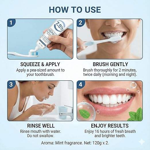 Pasta Dental Blanqueadora con Hidroxiapatita 7.5% nHAP, Repara el Esmalte, Reduce las Manchas en Dientes Sensibles, 120g