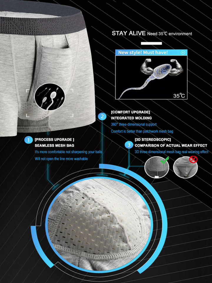 Palabras clave:Boxers separadores de cartuchos para hombre, Bóxers transpirables con separación de cartuchos y logotipo personalizado