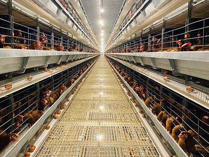 Jaula Higiénica de Cuatro Niveles Fácil de Limpiar con Sistema de Ventilación para una Producción de Huevos Optimizada