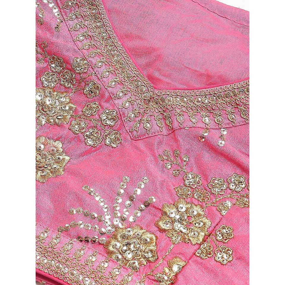 Ropa de boda de color rosa hipnótico bordado satén Lehenga Choli