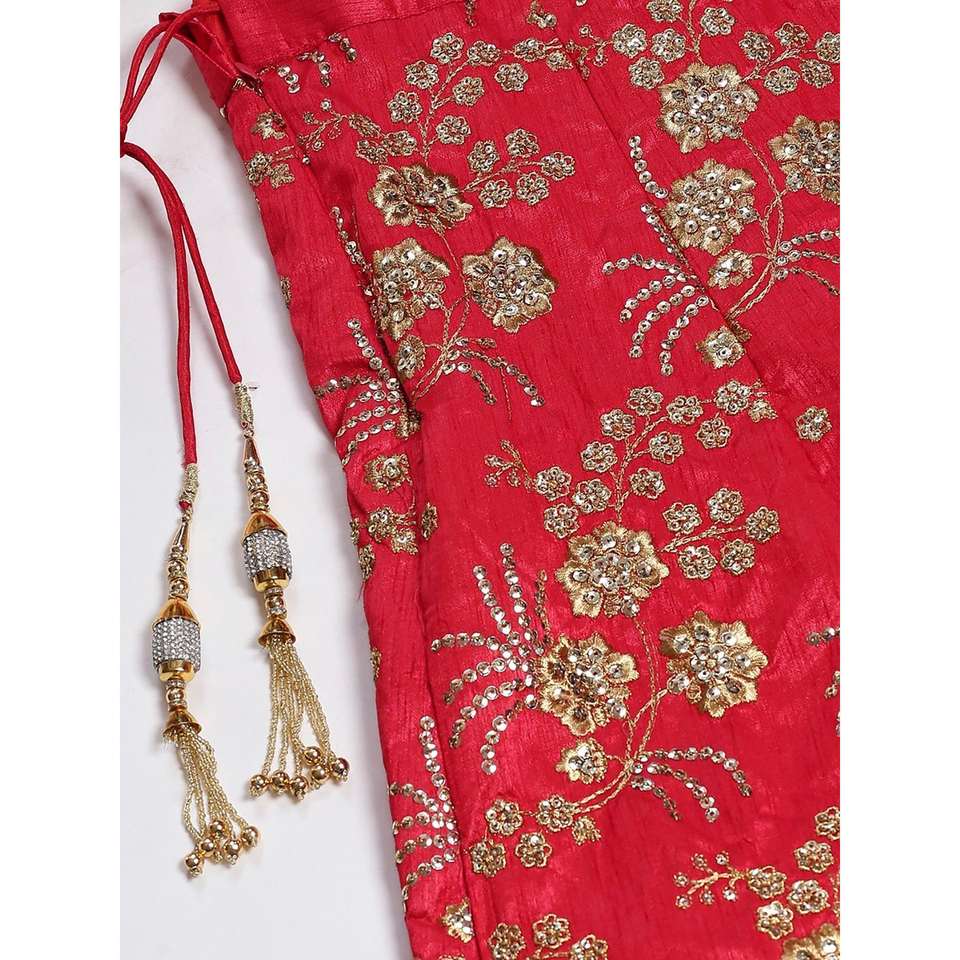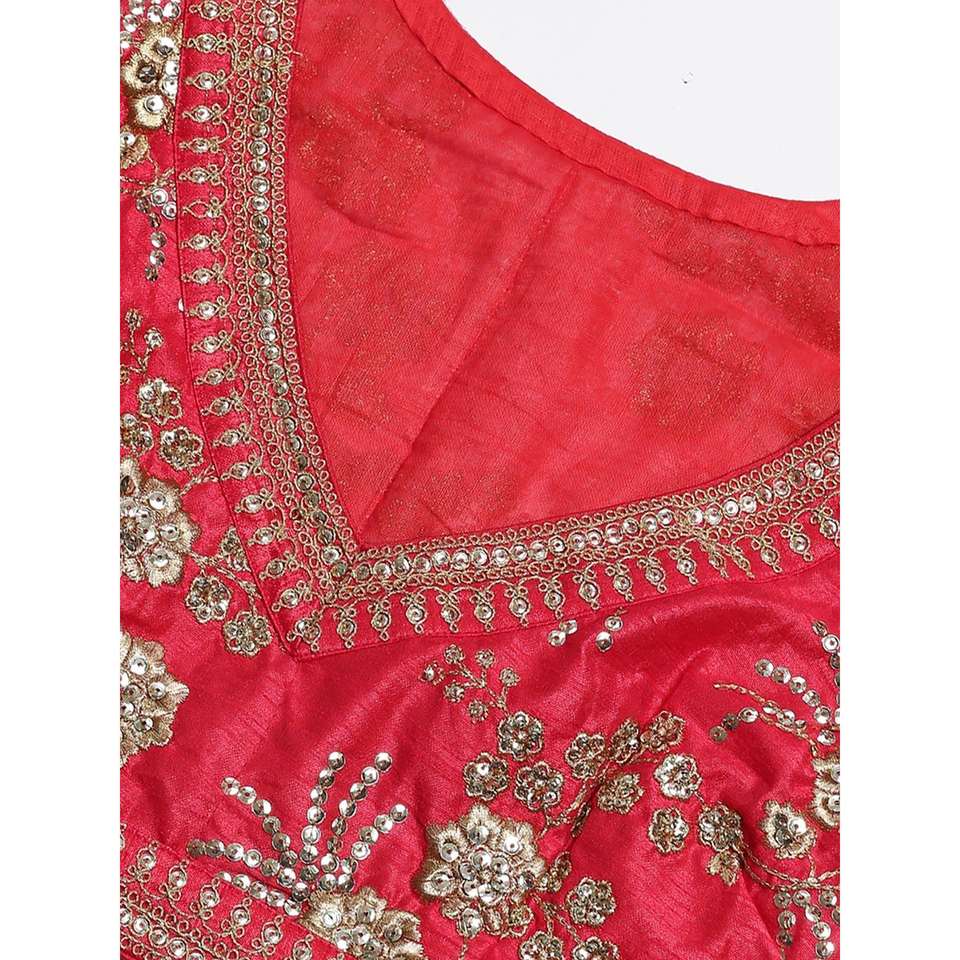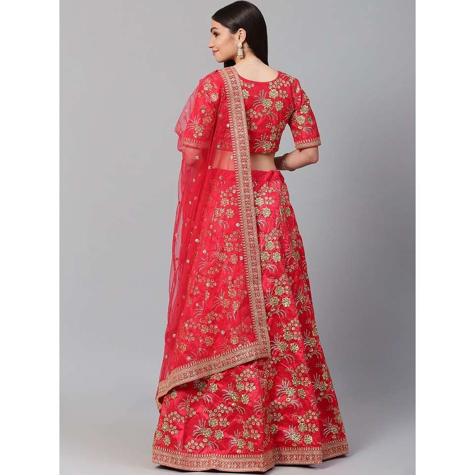 Ropa de boda de color rojo hipnótico satén bordado Lehenga Choli
