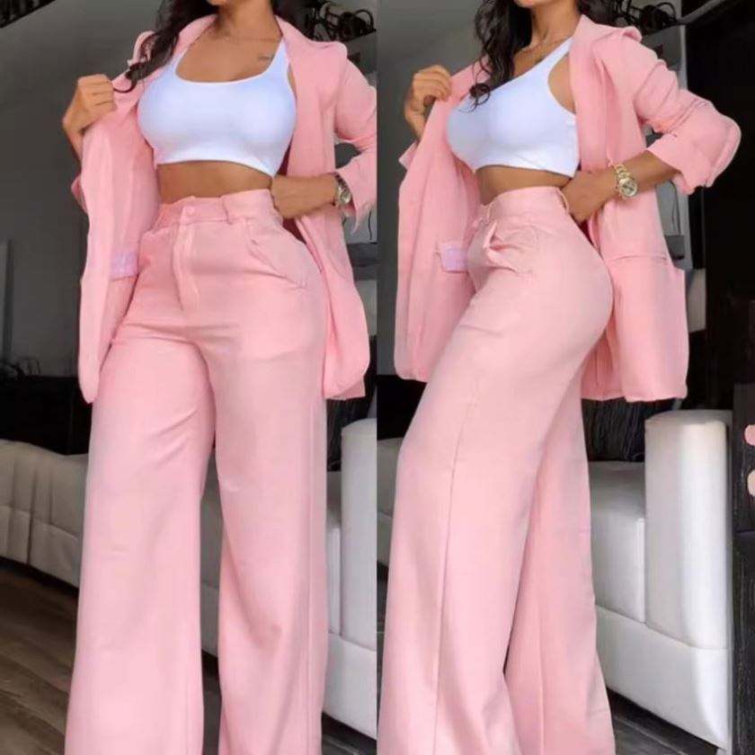I-0591 Nuevo Estilo Europeo Americano, Traje Formal Elegante para Mujer, Color Sólido, Manga Larga, Botones, Solapa Corta, Conjunto de Traje y Pantalón