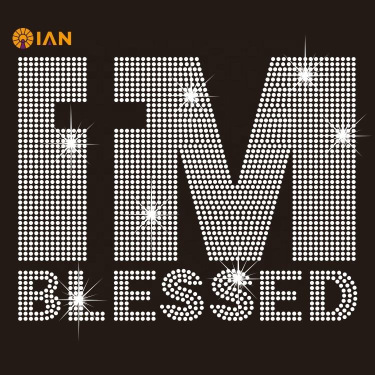 I Am Blessed Custom Religious Bling Rhinestone Transfer Iron on Crystal Motif Hot Fix