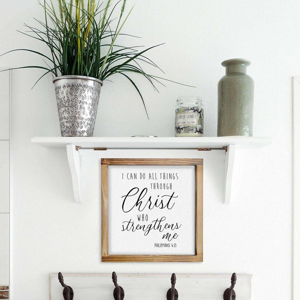Puedo hacer todas las cosas a través de Cristo, pared de salón, puerta, decoración colgante, carteles, letrero de madera personalizado, placa de barbacoa personalizada