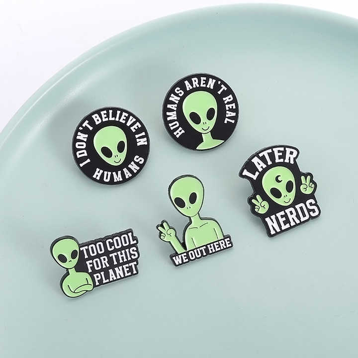 No creo en los humanos Esmalte Pin ET Aliens Citas Demasiado fresco para este planeta Broches Solapa Insignia Joyería Regalos para amigos