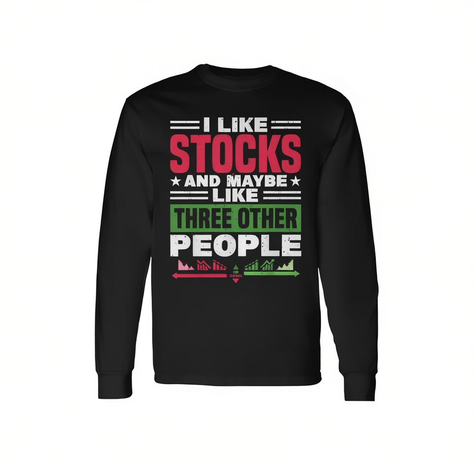 Camiseta de manga larga unisex con cuello redondo para adultos, con la frase 'I Like Stocks And Maybe Three Other People Investor', promocional