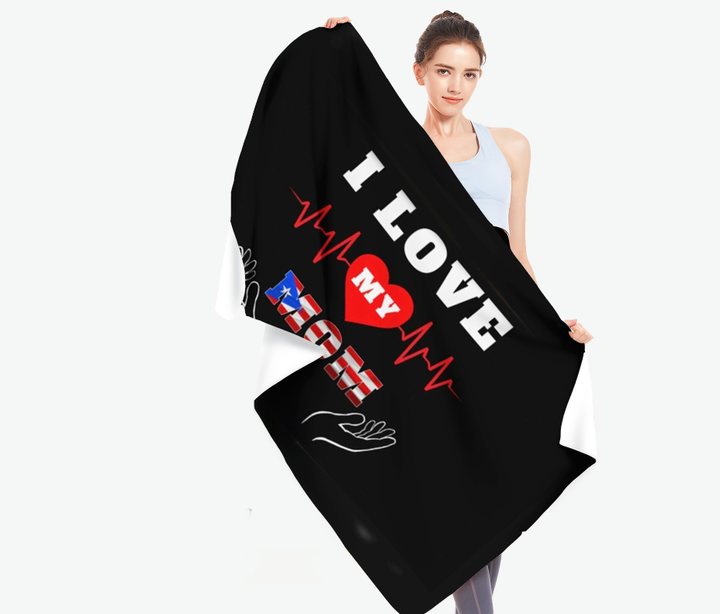 Toalla de Playa con la Bandera de Puerto Rico, Secado Rápido, Absorbente, Ultra Suave, para Viajes y Baño, con el Mensaje 'I Love My Puerto Rico Mom'