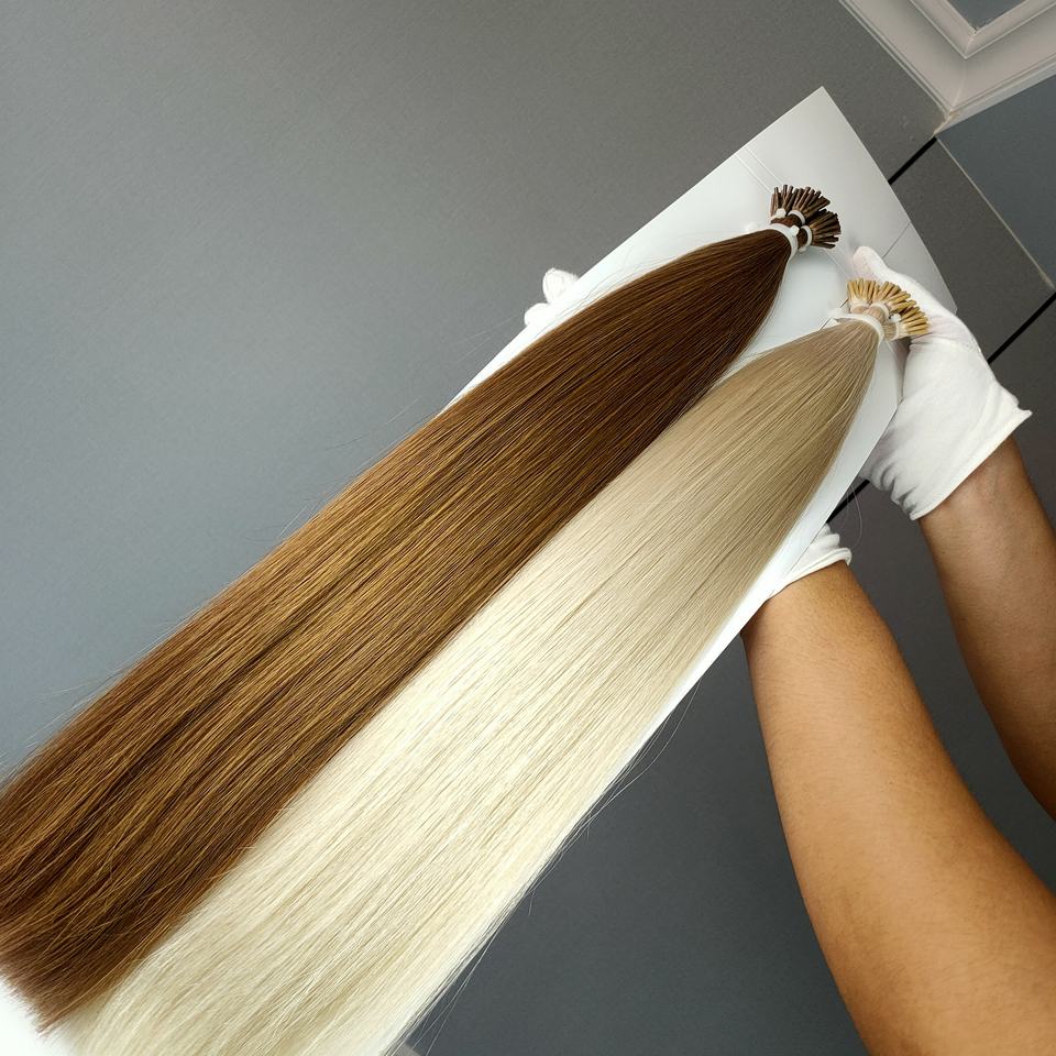 Extensiones de Cabello I-Tip, Cabello Humano 100% Virgen Remy con Cutícula, Queratina Italiana, Doble Trama, Premium Chino