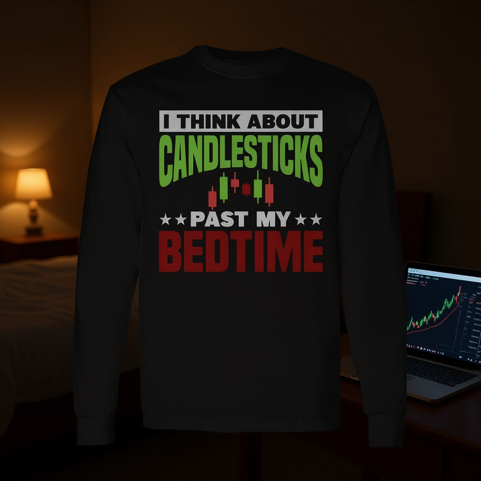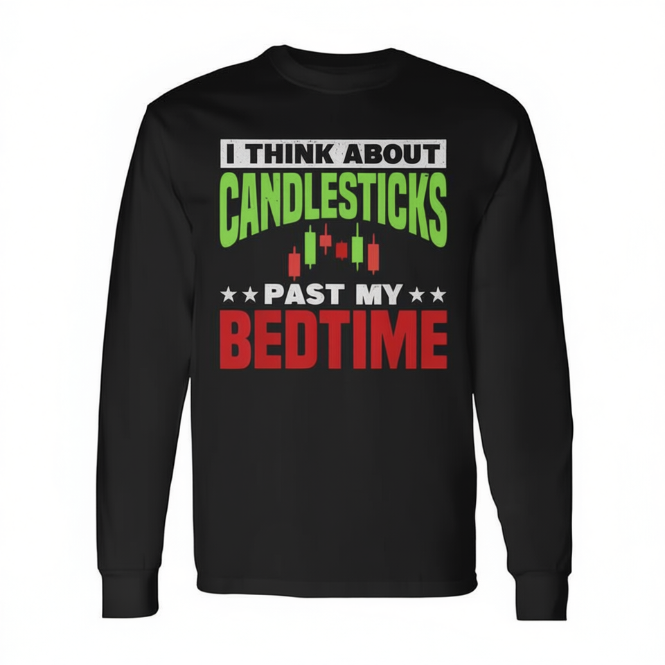 Camiseta de manga larga con estampado de I Think About Candlesticks Past My Bedtime, regalo para comerciantes