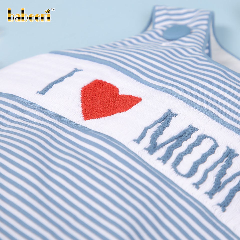 ¡Personalizado hecho a mano bordado Smocked Boy Bubble OEM ODM al por mayor de la venta al por mayor para los bebés niños 'I Love Mom' lo dice todo!