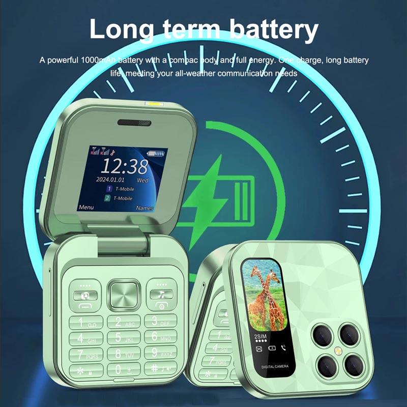 Teléfono Móvil I18 Pro Mini Flip, Red 2G GSM, Doble SIM, Grabación Automática de Llamadas, Marcación Rápida, Radio FM, Diseño Plegable, Tipo C