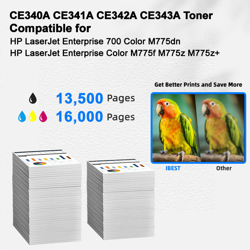 IBEST Compatible HP CE340A CE341A CE342A CE343A Cartucho de tóner Compatible para HP LaserJet Enterprise 700 Color M775dn M775f