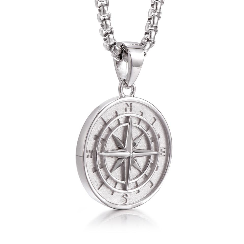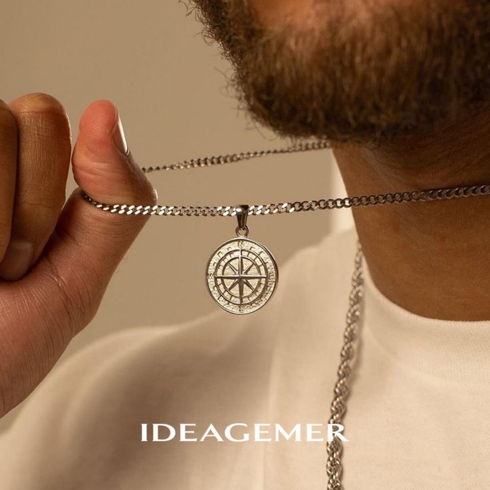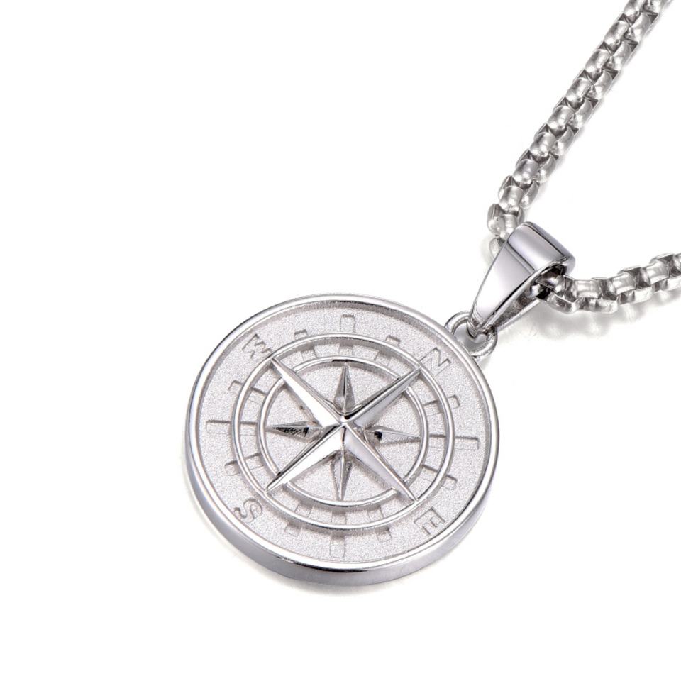 Collar de Plata de Ley con Brújula de Alta Calidad, Estilo Retro y Personalizado, con Cadena de Eslabones y Diseño de Placa de Estrella para Hombres, de IDEAGEMER