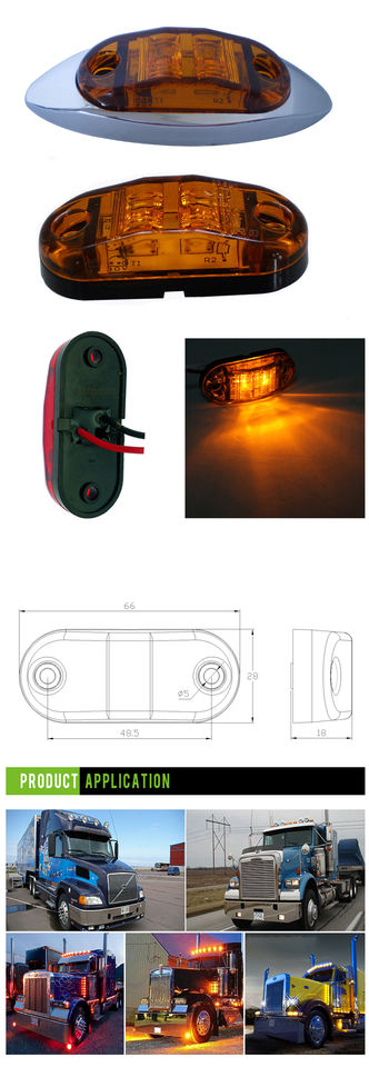 Luz de Posición Lateral Ovalada Sellada de 2.5 Pulgadas IDun, Nueva Base Cromada Ámbar, Luz de Posición LED de 2 Números para Camión, Remolque, Autobús Escolar
