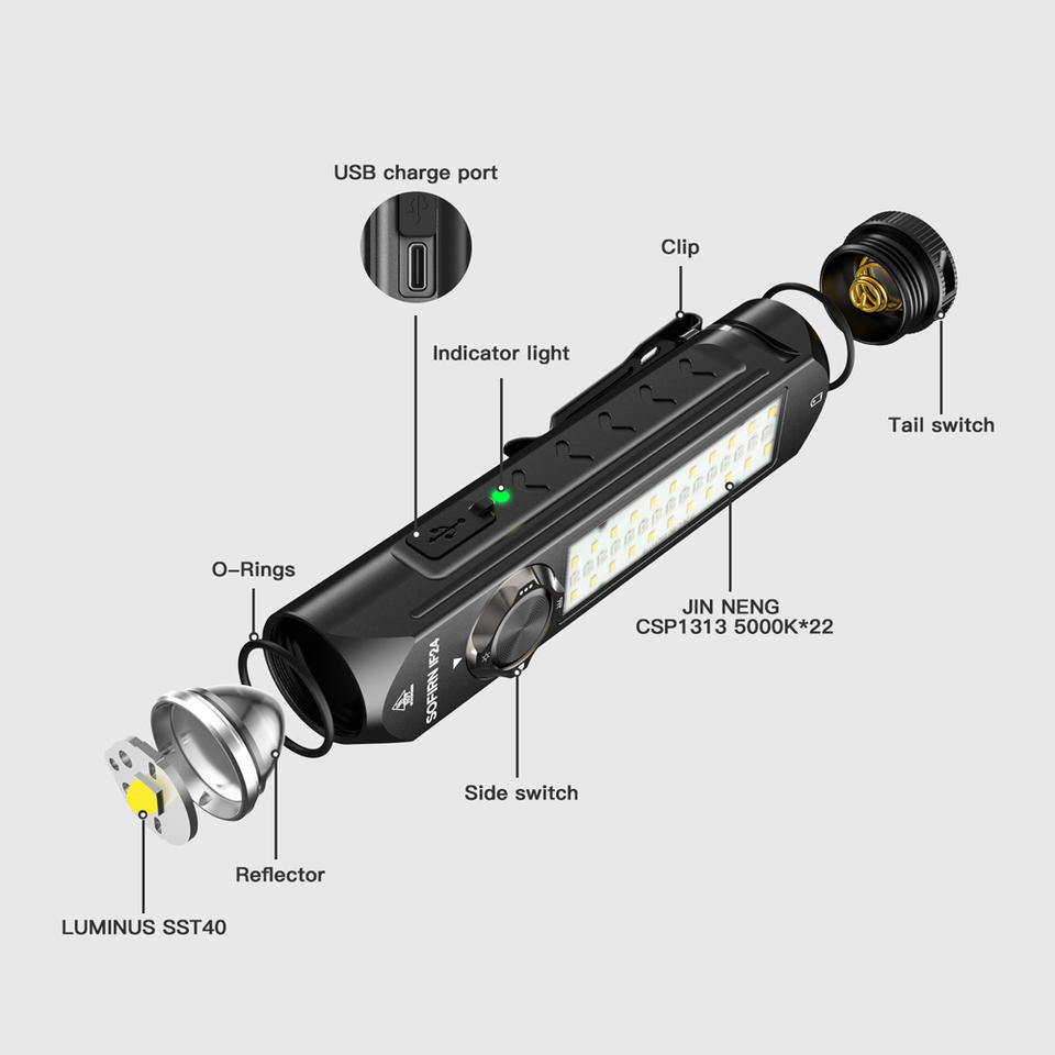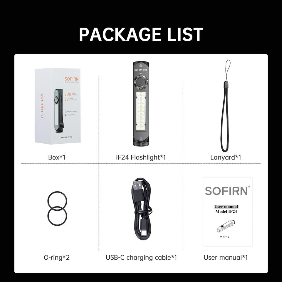 Linterna LED Recargable IF24, Mini Linterna EDC, Resistente al Agua IP68, 2000 Lúmenes, 16 Modos de Color, Cuerpo de Aleación de Aluminio, Tecnología ATR
