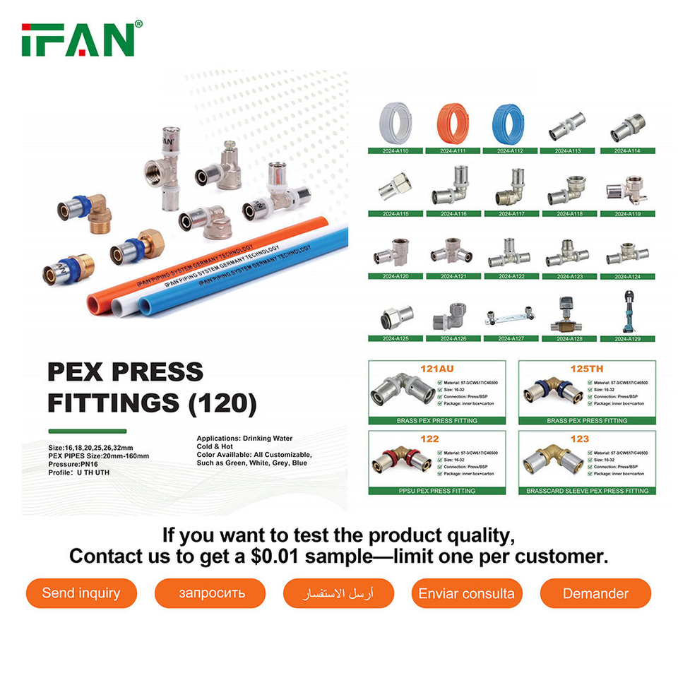 Conector de Tubería Multicapa PEX AL PEX de Fábrica OEM IFAN, Conector en Forma de U y TH, Accesorios de Latón para HVAC, Conexiones de Presión PEX