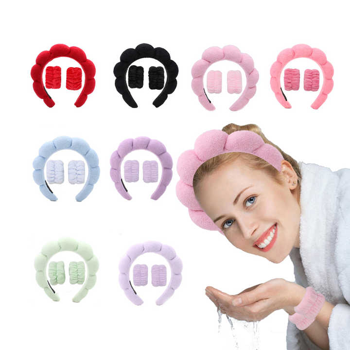 Sets de bandas para el cabello y muñequeras de maquillaje para spa, diademas para mujeres y niñas.