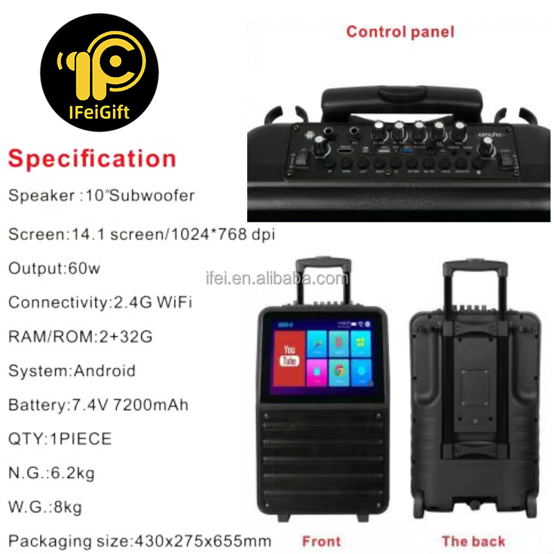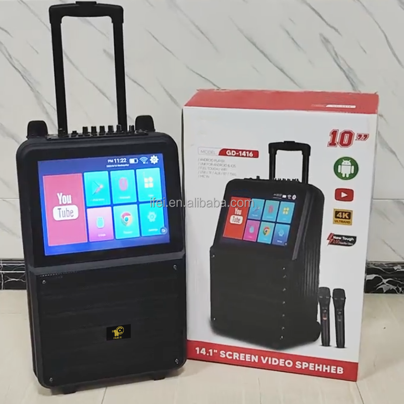 IFeiGift Carro nuevo diseño, último modelo, altavoz de graves de 10 pulgadas KTV, reproductor con pantalla táctil para YouTube, doble micrófono inalámbrico