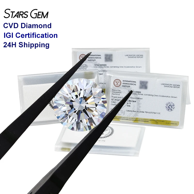 Diamante Cultivado en Laboratorio con Certificado IGI, Corte Redondo, 1CT, Color D-E E-F, Claridad VVS, Diamante Suelto HPHT CVD