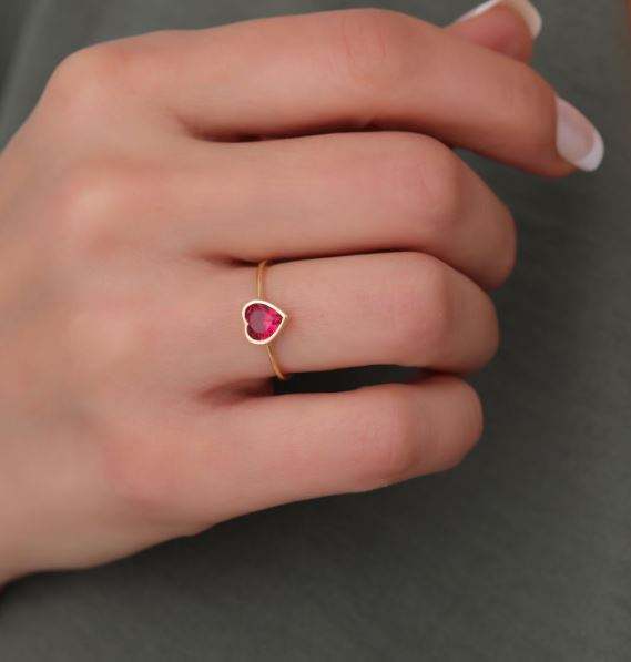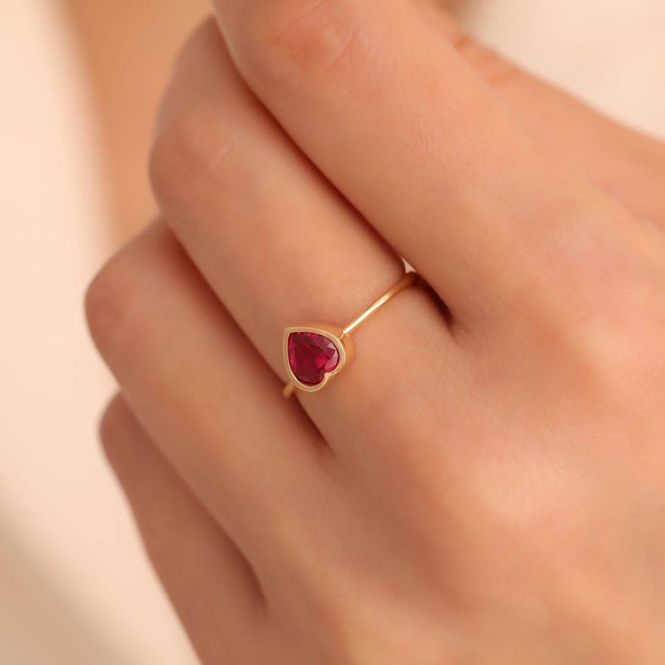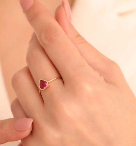 Nombre del Producto:Anillo de compromiso solitario de oro de 14 quilates con rubí natural en forma de corazón