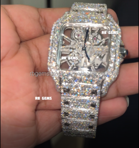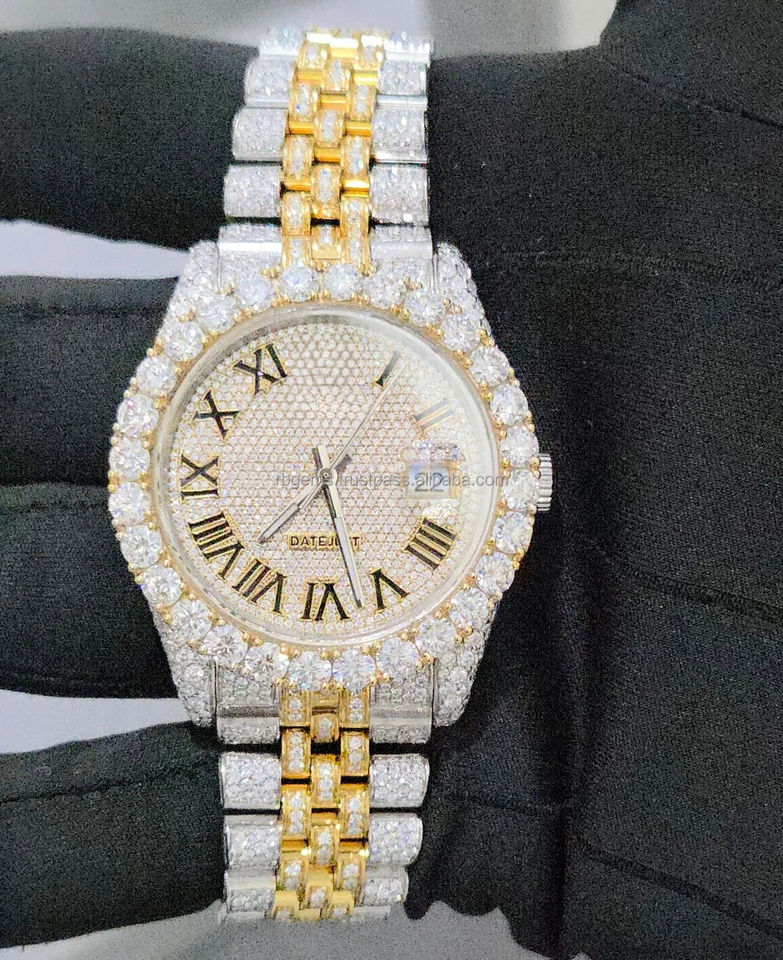 IGI Certificado VVS Moissanite Acero inoxidable Banda de oro blanco Mecánico automático Hip Hop Dial analógico Reloj para hombre