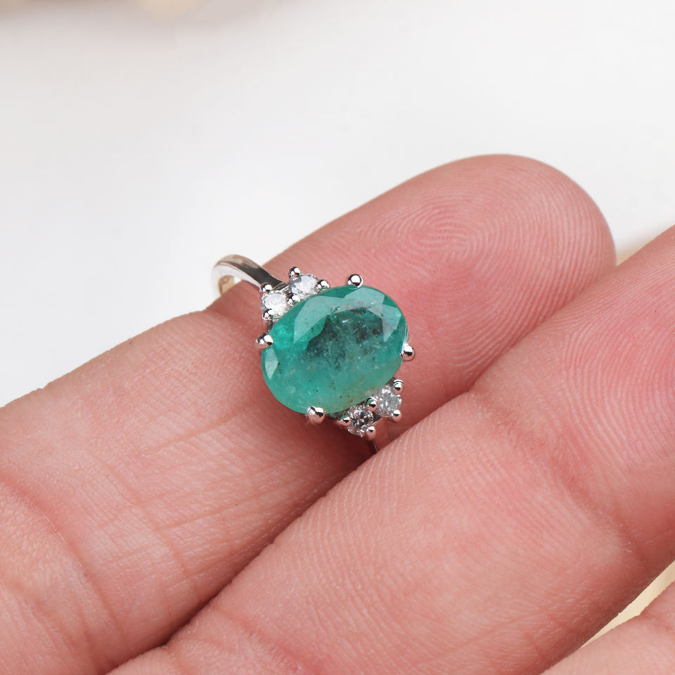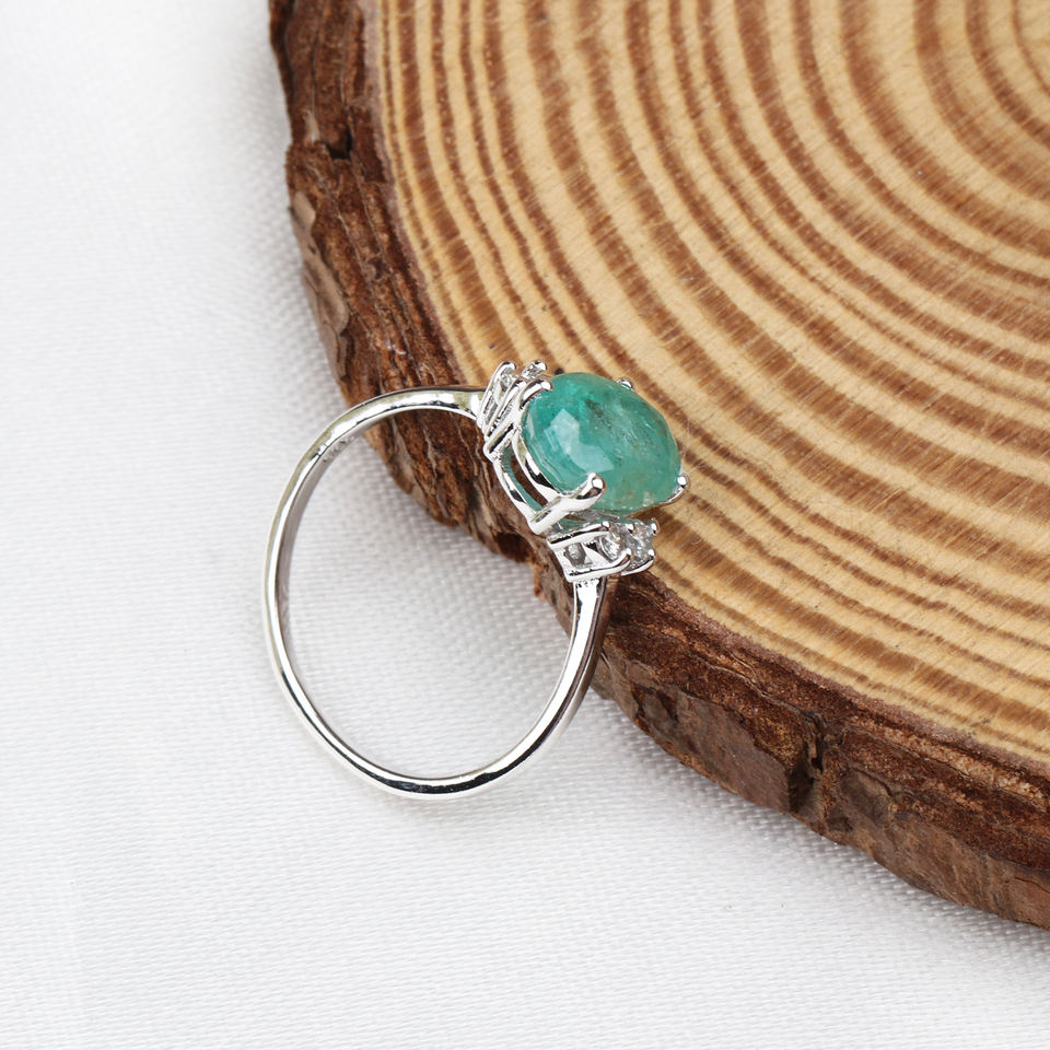Item Name:Emerald & Cubic Zircon Gemstone 925 Silver Ring
