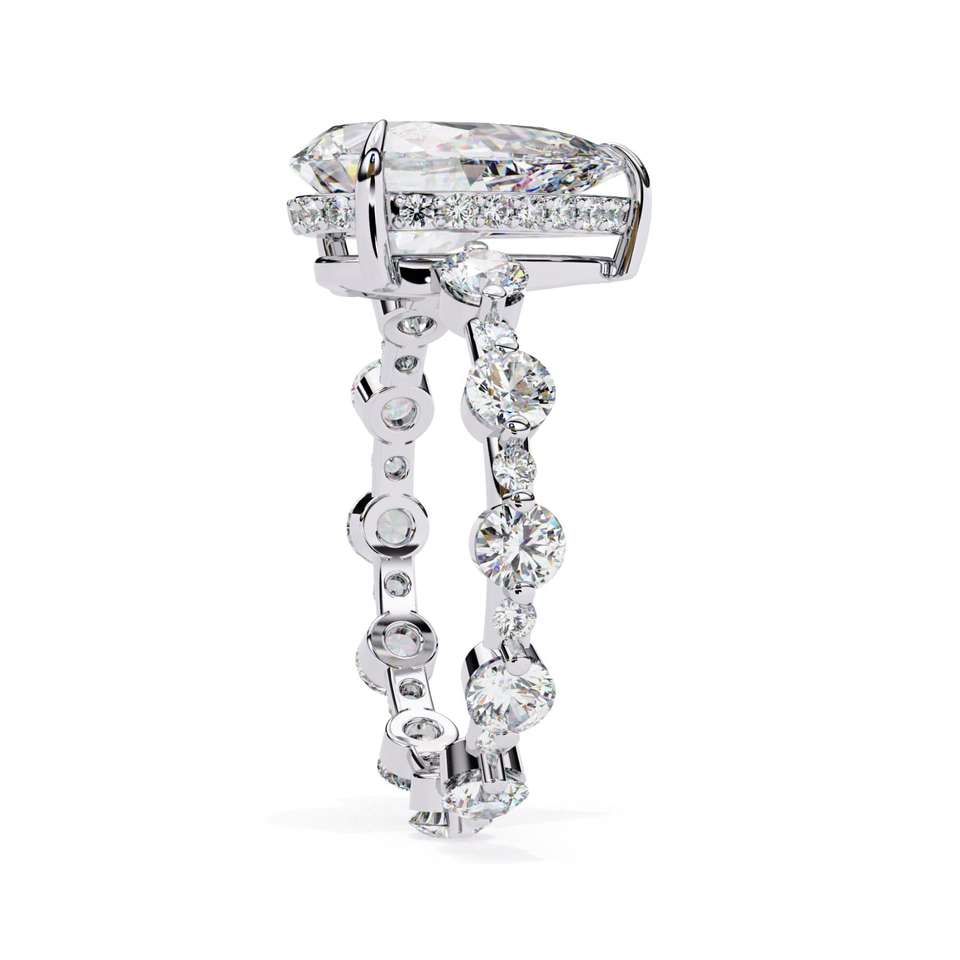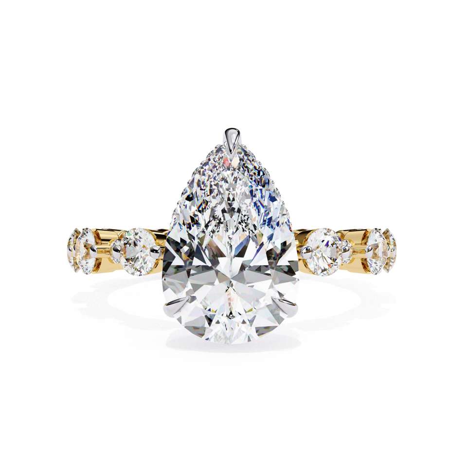 Anillo de Compromiso, Boda o Aniversario Unisex de Oro Sólido de 14K con Diamante Sintético Cultivado en Laboratorio con Corte Pera, Estilo Clásico, Certificado por IGI