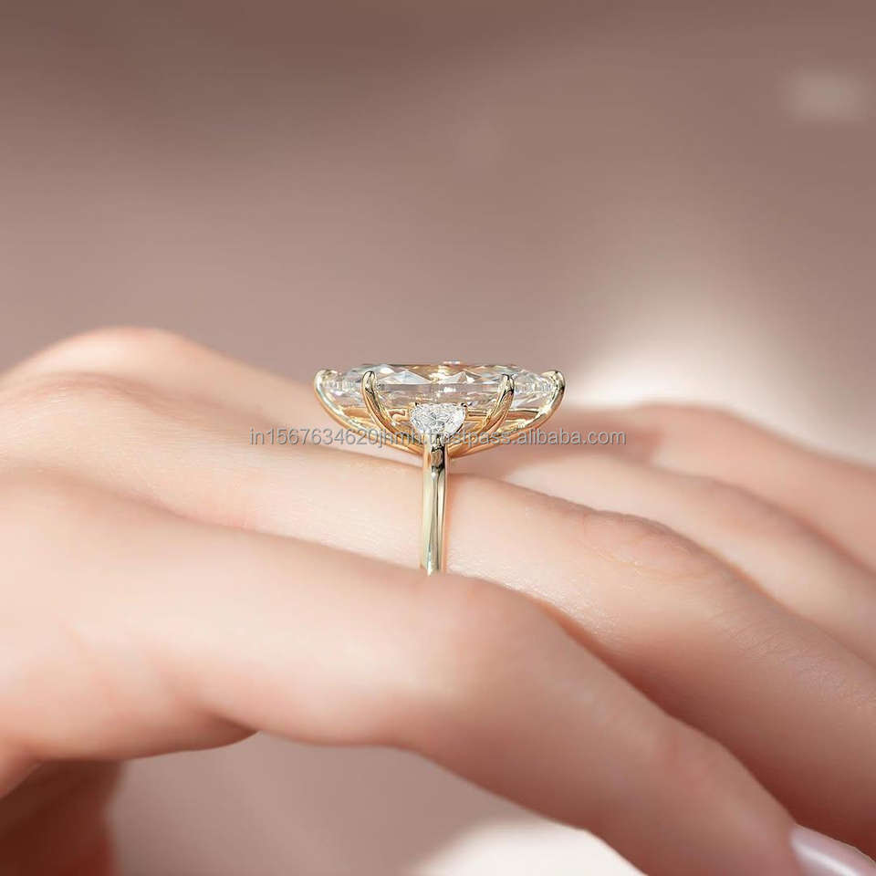 Anillos de Boda de Oro Amarillo y Blanco de 14k Cultivados en Laboratorio IGI/GIA, Chapados en Rodio, Corte Marquesa, para Aniversario