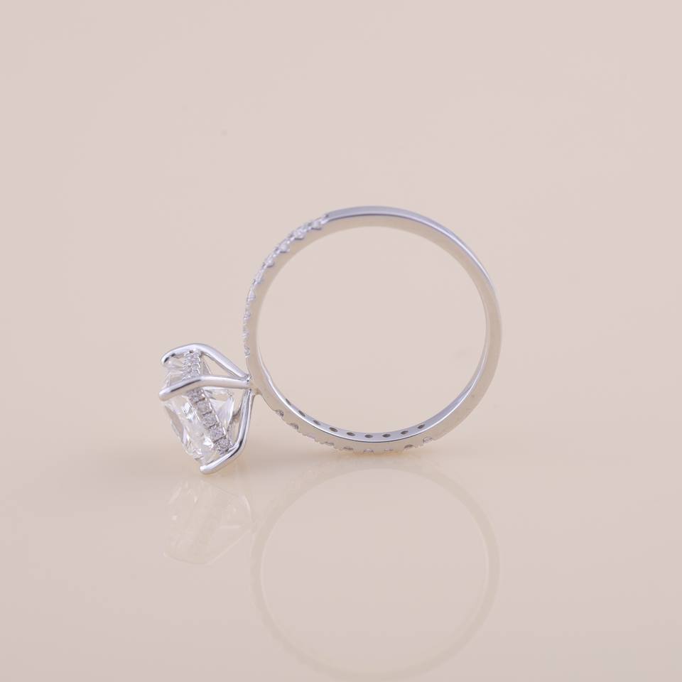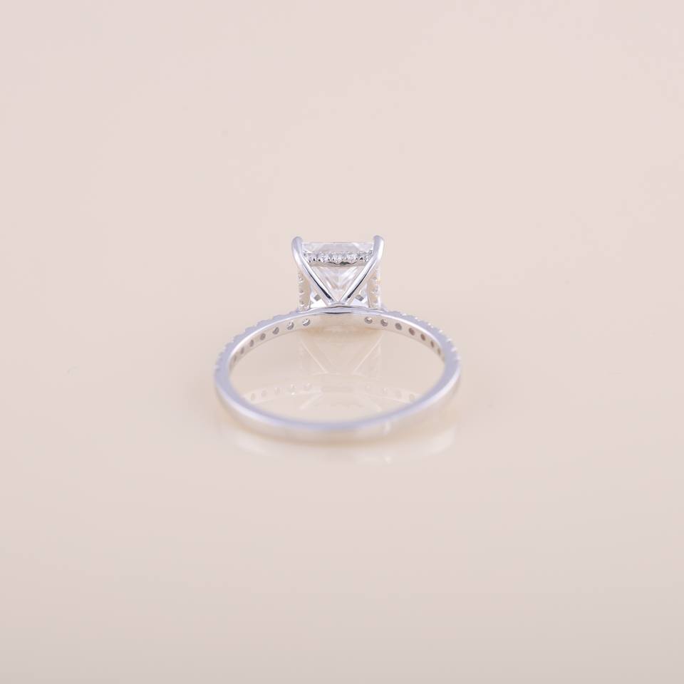 Anillo de Compromiso y Boda con Diamante Cultivado en Laboratorio, Corte Princesa, con Banda Pavé en Plata de Ley 925