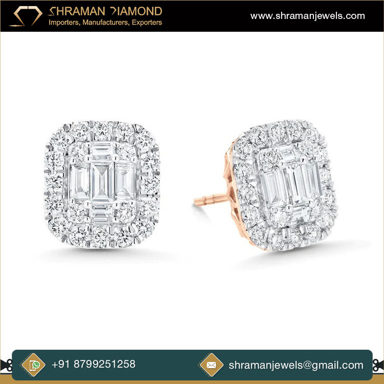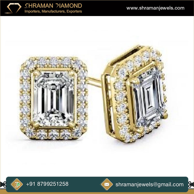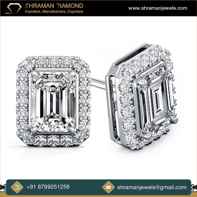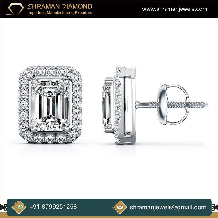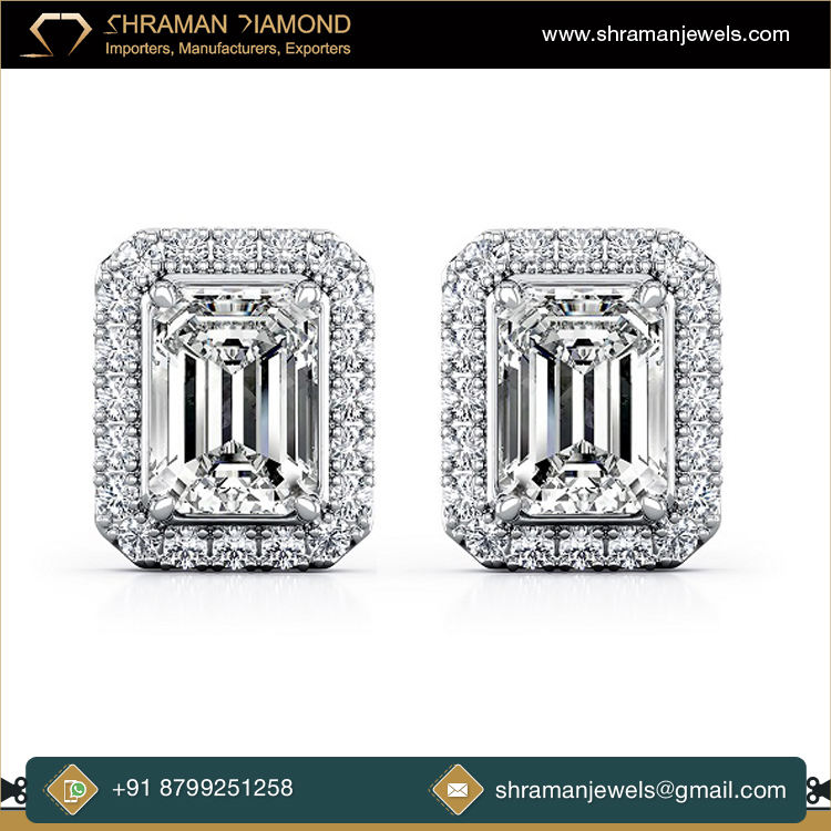 Esmeralda corte diamante halo Stud pendienteTipo de pendientes